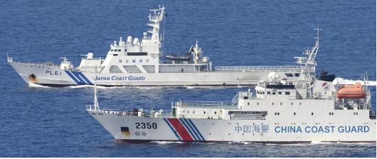 报道称,4艘中国海警船和4艘日本巡逻船均纵向排成一列,以钓鱼岛海域为中心反时针环绕航行。日本海上保安厅的巡逻船中,排在最前的是属于和歌山海上保安部的特警船“纪伊”号,载有“特别警备队”。日本船与中国船保持数百米的距离,一对一实施紧盯。