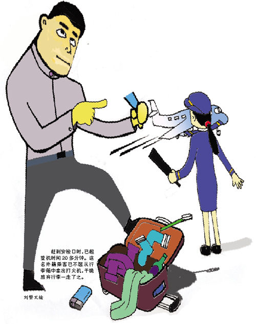 不愿从行李箱中取出打火机 一怒弃箱就走