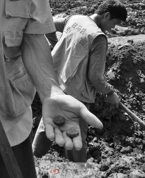 泥土堆里找到的铜钱
