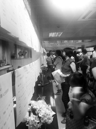 家长在现场认真查看年轻人的资料。 彭文蕊 摄