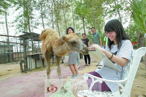 昨日上午,记者来到郑州轻工业学院易斯顿美术学院,校园里花草繁茂,绿树成荫,西北角一片400多平方米的地方,就是该校的动物写生园区。几名学生正在这里写生,突然一只小骆驼踱着方步凑了上来,试图从他们手中的画板上看到自己的样子,学生们只好给这位前来“视察”的贵宾让路。