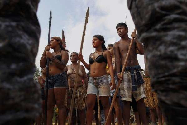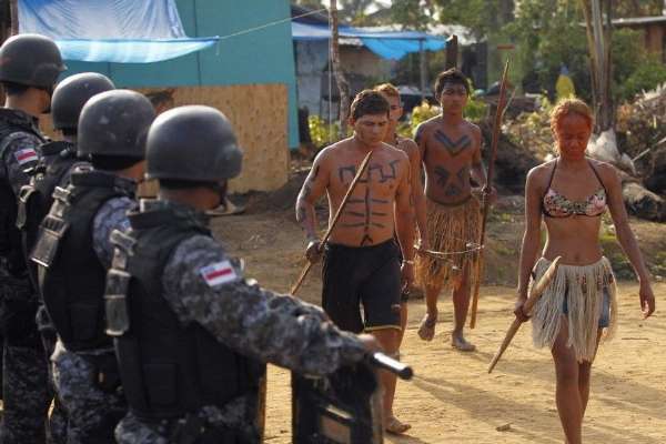 巴西土著用长矛弓箭对抗警方拆迁(图)