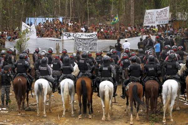 9月25日,巴西玛瑙斯,警方的骑警在与印第安人对峙。