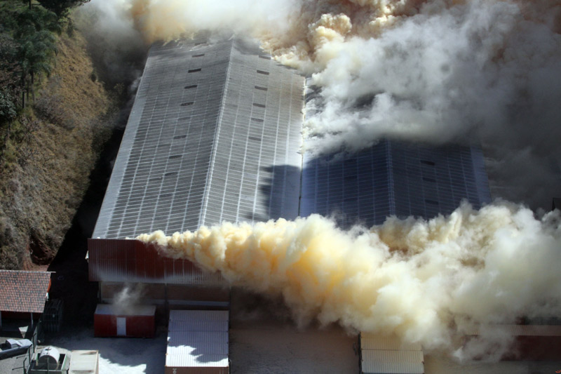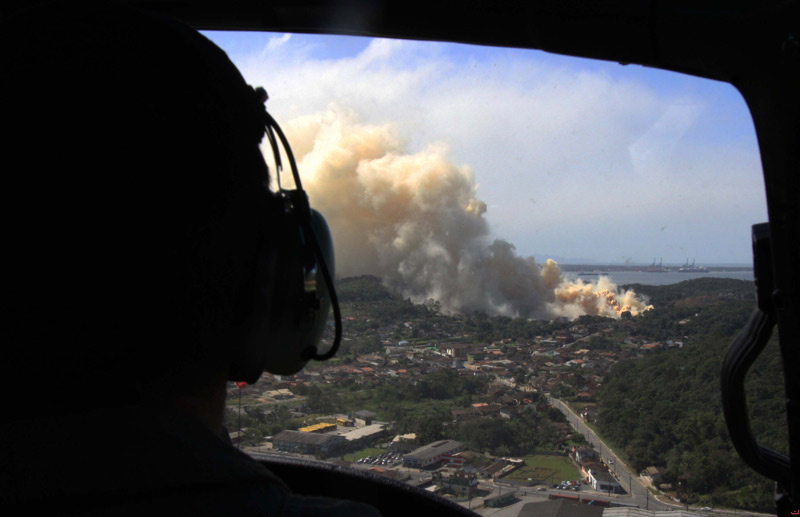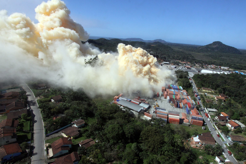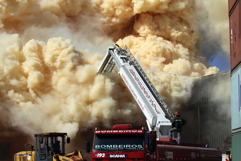 【环球网报道 记者 赵衍龙】当地时间2013年9月26日,巴西南部圣卡塔琳娜州(Santa Catarina)一家肥料仓库发生火灾,导致有毒烟雾蔓延直冲云霄,迫使当地警方紧急疏散了近150户家庭。目前还没有人员伤亡报道。