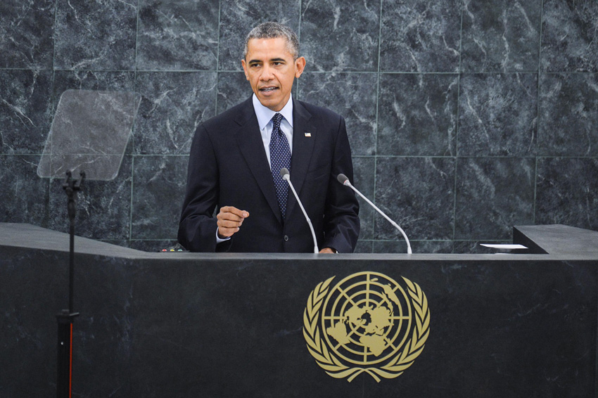 9月24日,美国总统奥巴马在纽约联合国总部举行的第68届联合国大会一般性辩论中发言。第68届联大一般性辩论当天拉开帷幕。联合国193个会员国以及观察员国、观察员实体和部分观察员组织的代表齐聚联合国总部,各自阐述对当前紧迫的全球性问题的看法。新华社记者牛晓雷摄