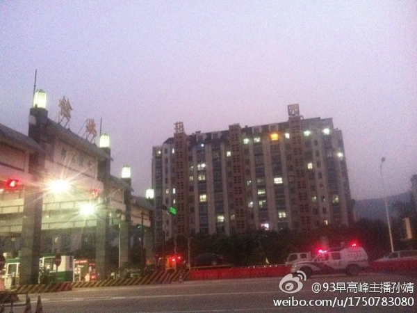 17:48,对面的居民楼在一瞬间亮了!晚风新月下,天佑余姚!(图片来源于微博)