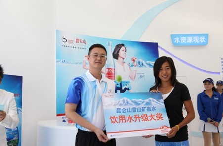 10月2日,进入中网女单第二轮的张帅亮相昆仑山体验馆,代表晋级中网16强的中国球员领取“饮用水升级大奖”,感叹“饮用水升级大奖”荣耀将激励运动员保持最佳竞技状态,勇攀巅峰!而在中网MVP、明星球员的示范和倡导下,球迷、大众开始了解“升级饮用水”的健康饮水知识,选择高海拔的雪山矿泉水,提升健康指数。