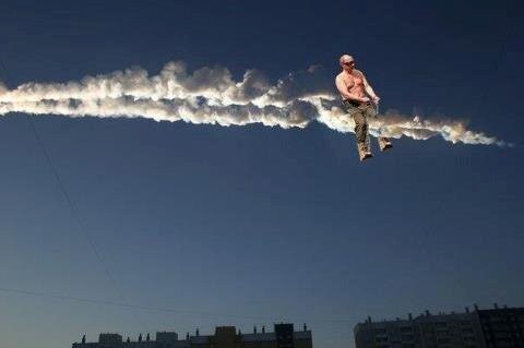 俄罗斯网友PS的普京骑陨石“尾巴”照片