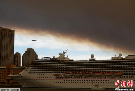 当地时间10月17日,澳大利亚新南威尔士州多处爆发山林大火,浓烟蔓延至悉尼港。受高温和大风天气影响,扑救工作十分困难。