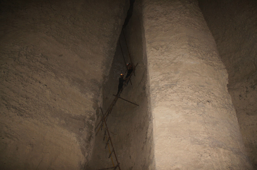 经过现场勘察,吐鲁番消防支队救援人员从山底徒步爬上山顶对被困人员进行施救。经过两个多小时的长途跋涉,消防员终于到达山顶,但由于山体过于陡立,救援人员只能利用绳索一点一点的往下滑,途中不断有石块滚落下来,有的战士臂膀、膝盖磨破了但还是咬着牙往下走最终人员到达了事故地点顶部,可由于到达位置离被困人员之间有多道沟壑根本无法接近,无奈之下救援人员只能原路返回。