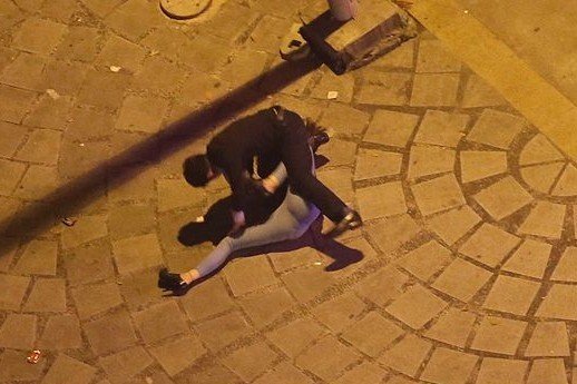 10月23日凌晨,成都一对情侣在街头厮打成一团,恰好被网友从高处拍了下来并上传至网络。穿着高跟鞋的女子,在先失利的情况下成功“逆袭”,将男子控制住。