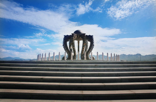 如今,随着“三祖文化”的广泛传播,这里已经成为海内外华人寻根祭祖的圣地。而在黄帝城遗址旁边,涿鹿政府联手张纪中复建了黄帝城,成为张纪中最新巨制史诗大剧《英雄时代》的主要外景地。城内建造有黄帝城、蚩尤寨、观星台等建筑,原始古朴,还原了史前人类生活、生产的场景。置身其中,仿佛已穿越到五千年前,追寻着始祖的足迹,踏过高高低低的亭台,那些书本上看来的史前文明已浮现在脑海之中,神思却已飘回至千年之前。