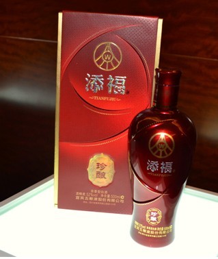 添福珍酿以红粱、大米、小麦、玉米、糯米五种粮食为原料,通过蒸糟拌曲,封窑发酵,蒸馏滴酒而成,具有浓香经典风格及窑香浓、进口绵、落口甜、入喉醇、回味长之特点。添福珍酿包装整体造型优雅,图文寓意深远,交错相映如挥舞的红绸,张扬了幸福的活跃感,更为美酒细腻协调的口感赋予了吉祥的颜色,以传统的红演绎现代的时尚,以经典的寓意表达当下的幸福。当传统与现代碰撞,沉稳与时尚相融,幸福的涟漪便泛了开来。