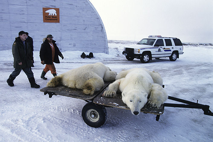 北极熊“囚犯”被监禁30天后,只要“行为良好”就可获释。而“狱警”也会利用直升机将北极熊送到偏远地区放生,以免它们经常探访小镇。此外,他们还会在北极熊背上涂上颜料,以兹识别。
