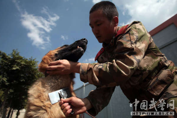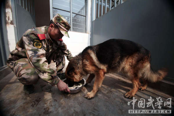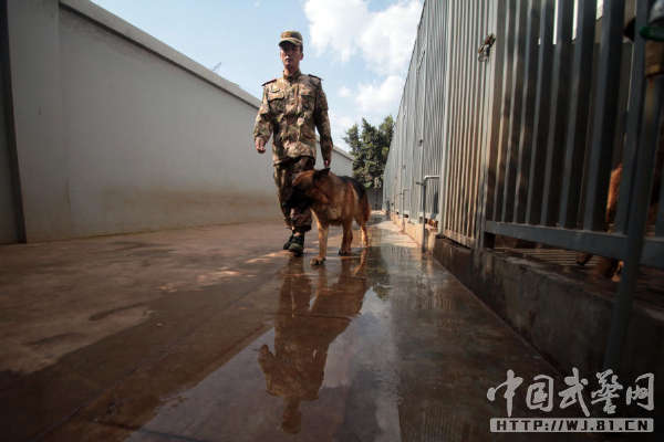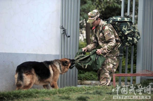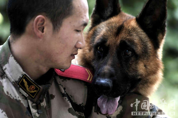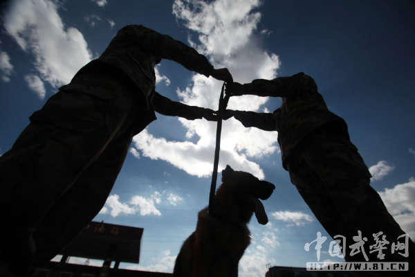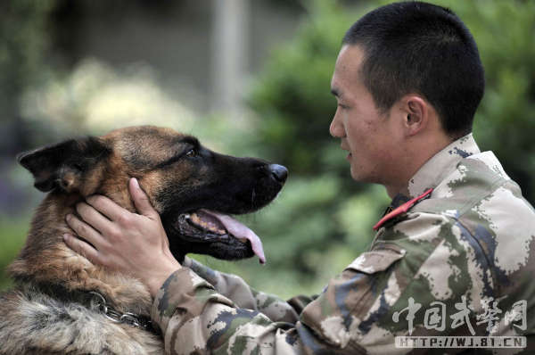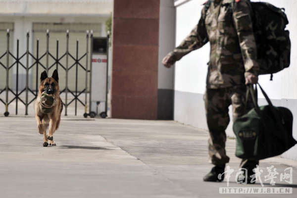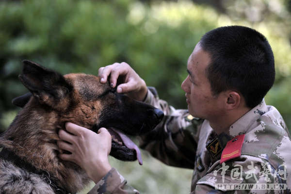 中国武警网讯:11月14日,武警云南总队三支队为警犬班退伍老兵蒋玉涛举行了与警犬分别和警犬交接仪式。从2012年初起,蒋玉涛担负了警犬黑豹的驯养任务,两年来,他们一起训练、一起执勤,黑豹虽不会说话,但他们像亲兄弟一样亲密无间、心有灵犀。