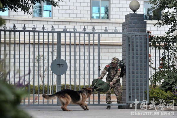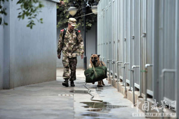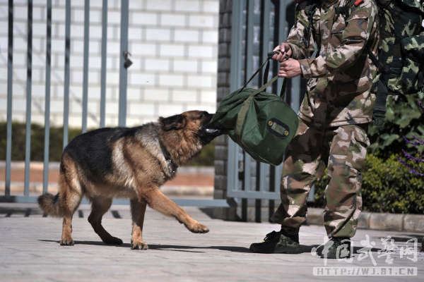 从犬舍门口到警犬班门口,黑豹一直这样死死地咬着蒋玉涛的行李。