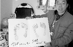 “从2011年开始到全国各地采集足印,至今已经跑了十几个省份,收集到三大本、近60双足印了。”