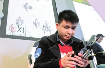 来自全国31名“打飞机”高手齐聚成都参加“打飞机”比赛,比赛现场,选手有4个专门座位,每个座位前固定了一台平板电脑,背后的大屏幕上,则会实时播放选手的游戏画面。
