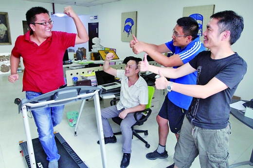 入职3个月以来,张山斯每天工作前都会自觉走向公司专门购置的跑步机,完成一组至少5分钟的跑步运动。