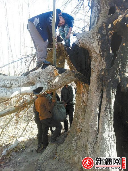 原标题:8岁男孩钻进树洞点燃188岁新疆杨