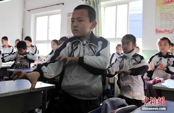 图为孩子在教室认真地“练功”。中新社发 翟羽佳 摄