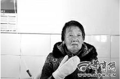 事发5日后,受伤的李群玲下巴处仍能看到被咬的伤痕。本报记者张小刚摄
