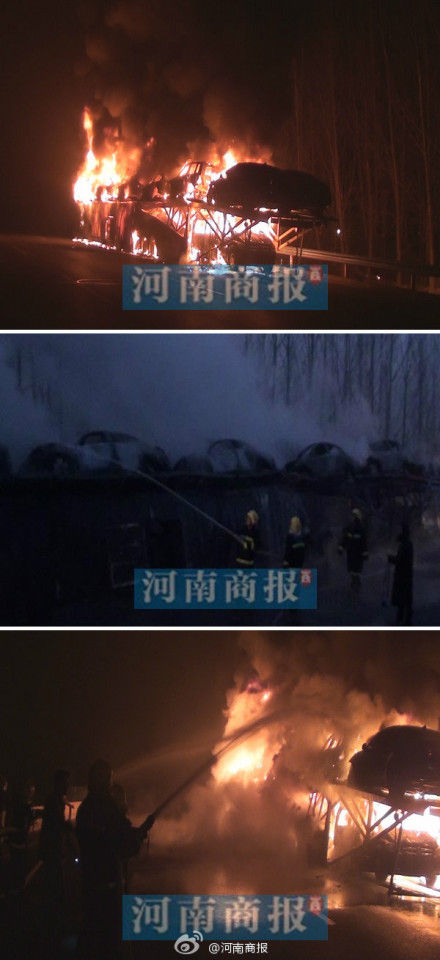 河南:货车高速起火 车载价值千万豪车被烧毁(图)