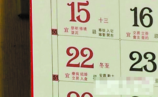 秦斌说,在上海,冬至当天都是平常人家祭拜的时间,但自己前几天准备订机票时却发现,今年的冬至有点怪,“我的手机和家里的日历都是22日,但是办公室的日历冬至时间却是21日。”由于不晓得哪一天才是真正的冬至,他订机票的时间也一拖再拖。