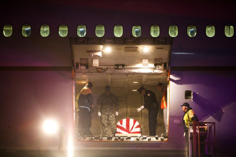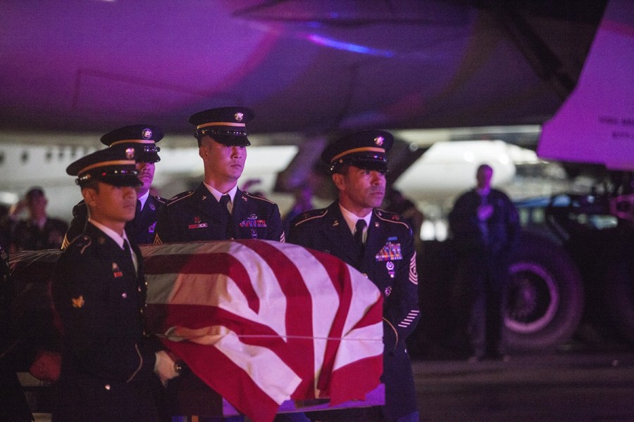 当地时间2013年12月21日,在朝鲜战争牺牲的美国陆军中士约瑟夫·甘特遗体回国。