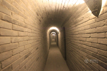 藏兵洞项目以曹操藏兵洞历史传说为依托,利用高科技手段营造出四维环境,其地下通道宛如迷宫,机关重重,人们不仅可以身临其境体验心惊肉跳的“探险之旅”,更能深刻体会到曹操用兵的足智多谋。图为曹丞相府景区曹操藏兵洞局部。