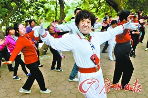 上周,记者在公园一角观舞,只见几位大妈戴着耳机,每人揣着一台收音机,或挂脖子上,或放进上衣口袋里。领队英姐住在天河公园附近,有着13年的广场舞经验,她每天8时准时起舞,难免收到过扰人清梦的投诉。在公园禁止噪音扰民的问题上,她愿意退让一步,“比起被全面禁止,又或者经常跟居民起矛盾,找到互相迁就的办法是最好不过。”