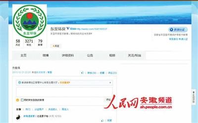 方佳伟于2013年12月31日发布的微博显示,他将相关照片和采访动态发布到了自己微博上,并@了东至县政府新闻办官方微博“@东至发布”,以及东至县环保局官方微博“@东至环保”。