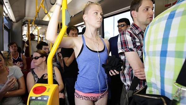 澳大利亚多人响应“地铁无裤日”,光腿乘电车。(资料图)