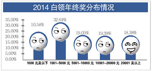 小白领发年终奖喽:四成多低于5000元 近四成高过万元