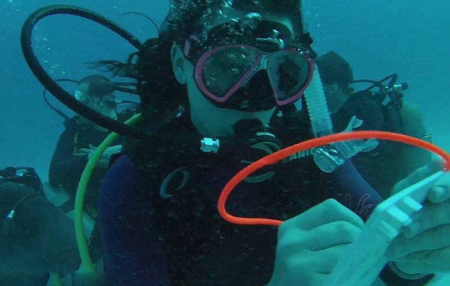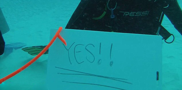 【环球网综合报道】据英国《每日邮报》1月16日报道,2013年12月,一位来自美国德克萨斯州的核工程师迈克尔·本森(Michael Benson)和他的女友带着水肺潜到墨西哥的普拉亚德尔卡门(Playa Del Carmen)海中,在鲨鱼的簇拥中,他向女友求婚,给了她一个终生难忘的求婚。