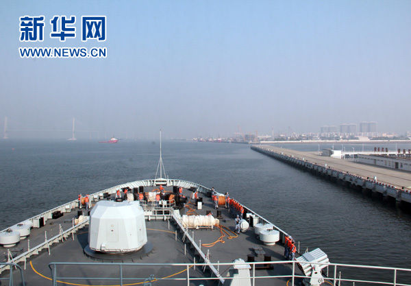 南海舰队远海训练编队解揽绳启航。高毅摄