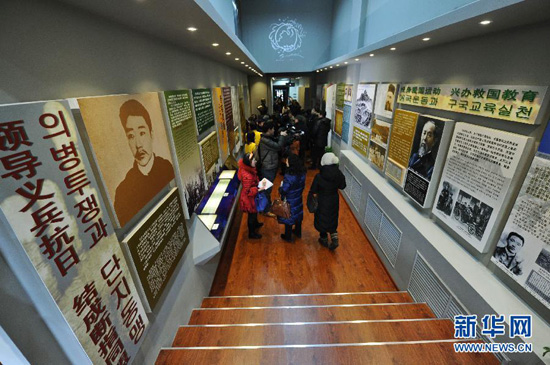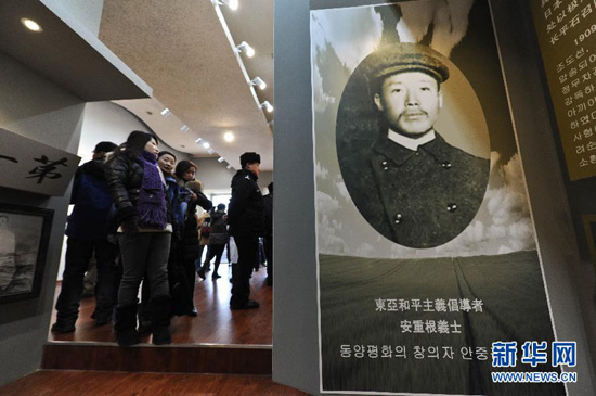 1月19日,观众在安重根义士纪念馆参观。当日,位于哈尔滨火车站的安重根义士纪念馆举行开馆仪式。一个多世纪前,朝鲜半岛近代史上著名的独立运动家安重根在此击毙日本枢密院议长、首任“韩国统监”伊藤博文。纪念馆面积100多平方米,包括安重根义士事迹陈列室、安重根击毙伊藤博文地点标识等。新华社记者 王松 摄