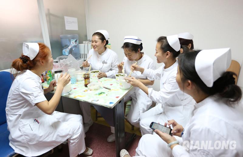 [NextPage]午饭时间是孙琳最轻松的时候,年轻护士门围坐在一起总有说不完的话(11月6日摄)。千龙网记者 张启新摄