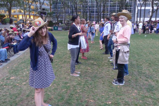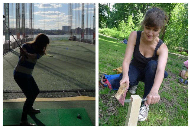整整一年,莉迪亚每天做一件以前从未做过的事。其中有的很简单:例如在纽约时代广场与著名的“裸男牛仔”拥抱合影,坐直升飞机环游曼哈顿上空,或者在曼哈顿西区学习高尔夫球等。有的则比较新奇:比如参加布鲁克林空气吉他大赛,与美国空气吉他高手一起弹吉他;在世贸中心大楼前的哈德逊河中划皮筏艇,去纽约皇后区帮助志愿者建造防风沙丘,或者在布莱恩特公园参加“音乐椅”活动等等。