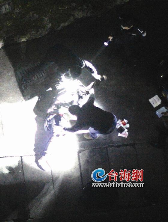 此时,民警已经在现场拉起了警戒线,正用手电筒查验尸体。