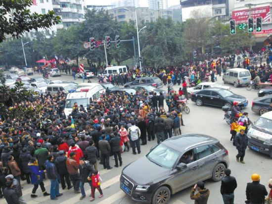 据华蓥当地一出租车司机介绍,事情发生在昨日上午10点左右,因为现场围观人群太多,附近路段一度出现交通瘫痪,直到警察赶到现场,围观人群才慢慢散去。