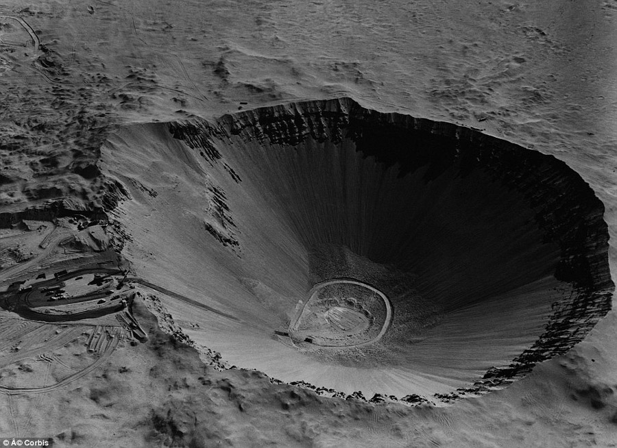 Sedan弹坑。这是最大的弹坑之一,美军测试核弹能否用于建造水库时留下的。