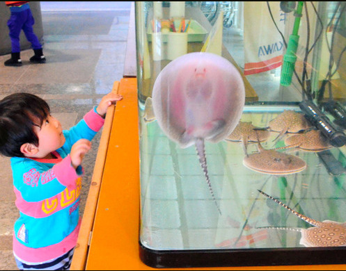 2013年12月,该水族馆从宠物店里买回一对魟鱼,其中雌鱼于2014年1月份产仔。属于赤魟科的珍珠魟分布在亚马逊河流域,被称为淡水鳐鱼。属于肉食系,尾巴带有毒刺。