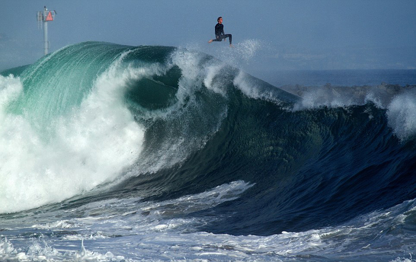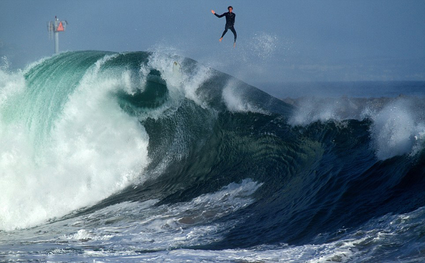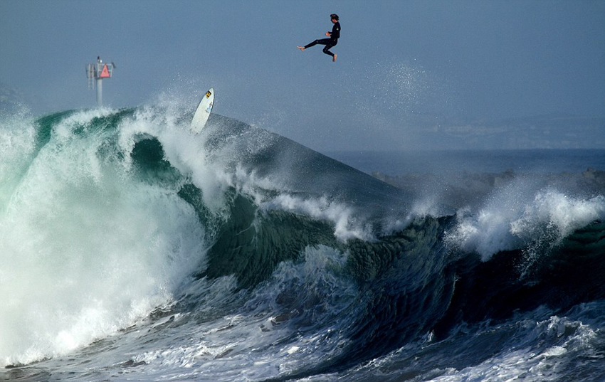 鲍比这次遇到的巨浪高约9米,他由于没有跟上浪尖的速度而失去控制,被巨浪甩向空中大约14米(高出浪尖5米)。空中的鲍比由于失去控制而姿态变化万千,该戏剧性的瞬间刚好被一位摄影师抓拍到。