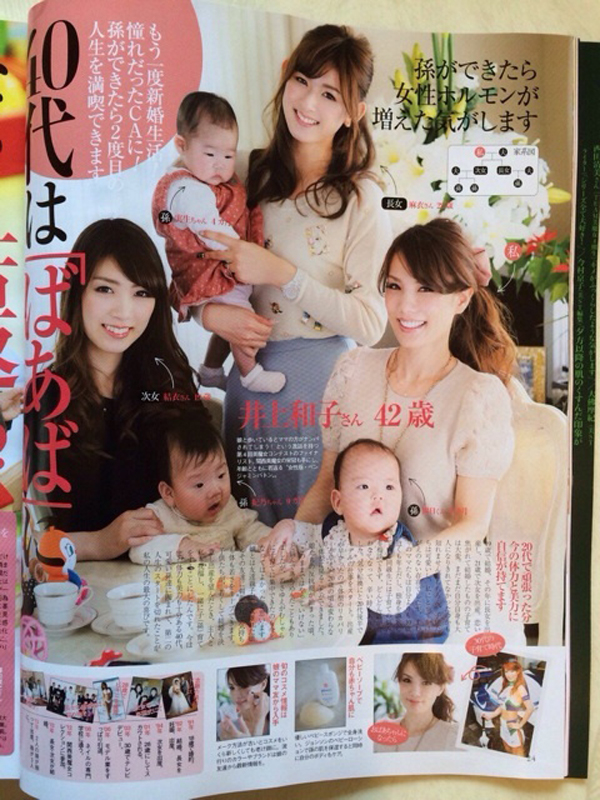 井上和子不仅容貌美丽,身材也与二十年前相差无几。她在接受采访时自曝19岁就成为妈妈,去年她的大女儿和二女儿分别生下孩子,42岁的她荣升外婆。井上和子透露,目前的目标就是“成为漂亮的外婆”。