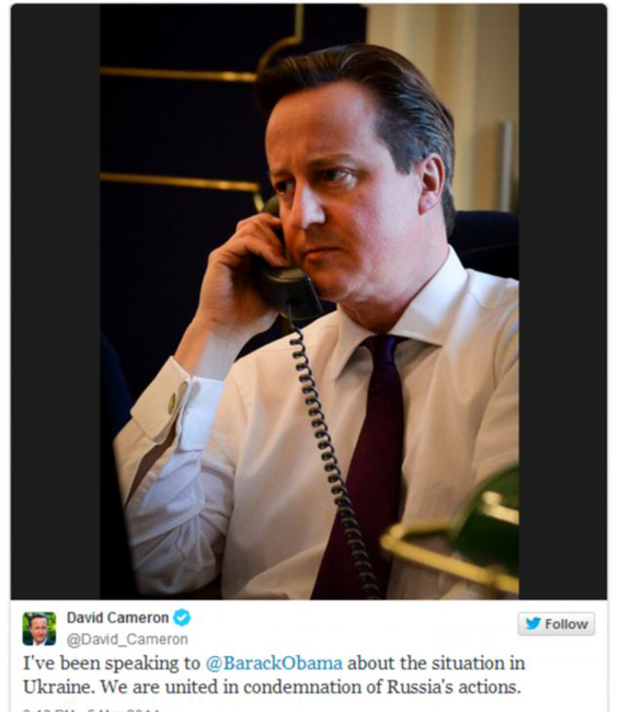 卡梅伦致电奥巴马自拍照