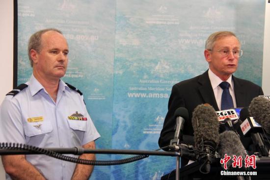 澳大利亚海事安全局于北京时间3月20日12:30召开新闻发布会,其发言人表示,澳方在印度洋中发现了两个物体,有极高可能性与马航失联客机有关。中新社发 韩超 摄