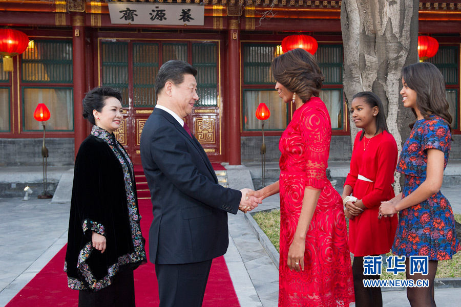 新华网北京3月21日电(记者郝亚琳)国家主席习近平和夫人彭丽媛21日晚在钓鱼台国宾馆会见美国总统奥巴马夫人米歇尔。