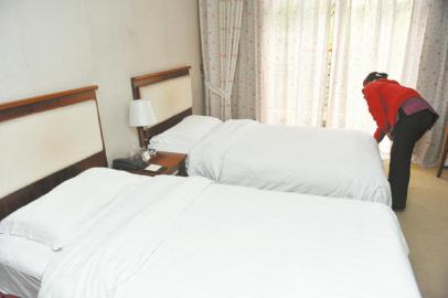 记者在别墅内看到,除了大厅、厨房等公共区域,别墅内每个房间都是标间布置,房间内有双人床、电视柜、基本洗漱用具,“价格和我们主楼的标间一样。”