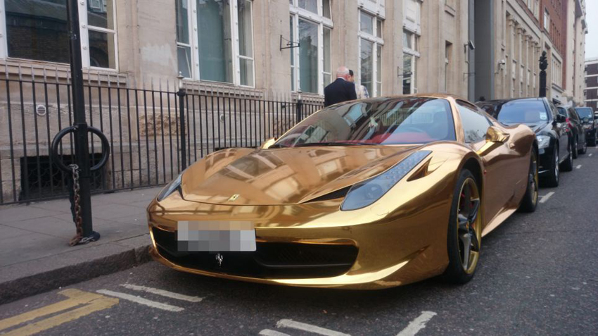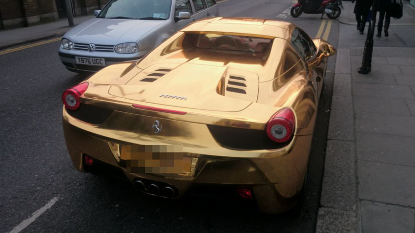 超级跑车历来被视为身份的象征,而法拉利更是高贵身份的体现。这位伊拉克拳王也不例外,他拥有一辆高端坐骑法拉利458Spider,这辆敞篷版的超级跑车是流行的可转换版本,被认为是意大利公司建造的最大的汽车之一,此外它最大马力有562ps,拥有4.5升的V8引擎,最大时速可达199英里/小时。如此高端的豪车依然无法满足拳王的要求,他还自费将车身涂成黄金色。拳王在伦敦进行训练时,将车子停在训练场外,不一会儿路人都被这辆特别的豪车所吸引。